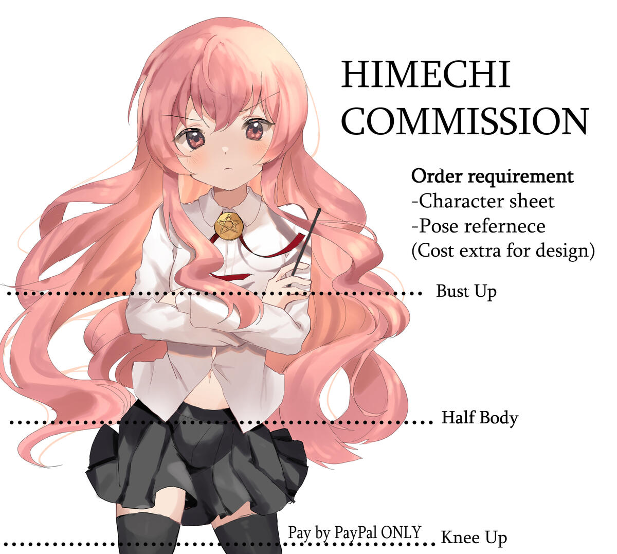 1. USAGE-You are allowed to use the artwork in any non-commercial way.-For commercial use , please contact me with usage/full detail.-For Streamers and Vtubers the picture will be consider commercial use.-Always credit @himechidraw-I'm allowed to post the commission artwork on my social media , present it as my portfolio.2. PAYMENT-Payment must be upfront.-No refunds.-PAYPAL & wiseCurrency : US dollars $3. PROCESS-No edit fee charge in Stage Sketch. However, any major change requires an additional fee after Stage Sketch.-Work In Progress will be given.Delivery time : 1-2weeks. More than 2 weeks if it is a big project.